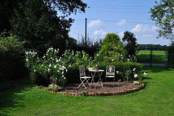 Ein gemütlicher Rosenpavillon und diverse Sitzecken, laden zum Entspannen ein.