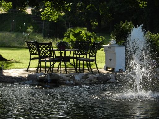 Unser Garten ist ein 1 ha großer Parkgarten, durch den ein natürliches Gewässer hindurch fließt. Der Parkgarten verfügt über zwei Teiche, einige Wasserspiele sowie alten und neuen Baumbestand. Ein wunderschöner Blauglockenbaum ist ein ganz besonderes Highlight. In unserem Garten befinden sich viele Beete mit verschiedenen Stauden und seltenen Gehölzen.